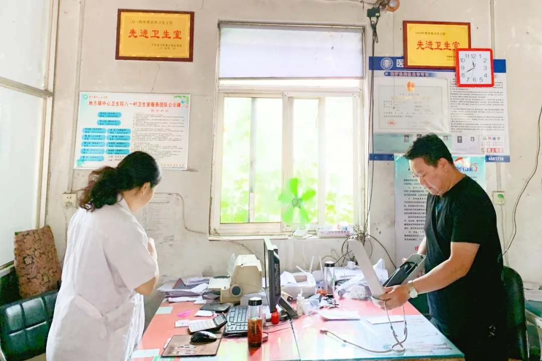 卫生室内张贴卫生知识宣传海报,丰富多彩的图画结合文字将村民们的目光吸引;医务人员们手上忙活着,嘴上也没停下过,卫生知识就在家长里短、嘘寒问暖的话语中印在了村民的脑海里,暖在了村民的心里。