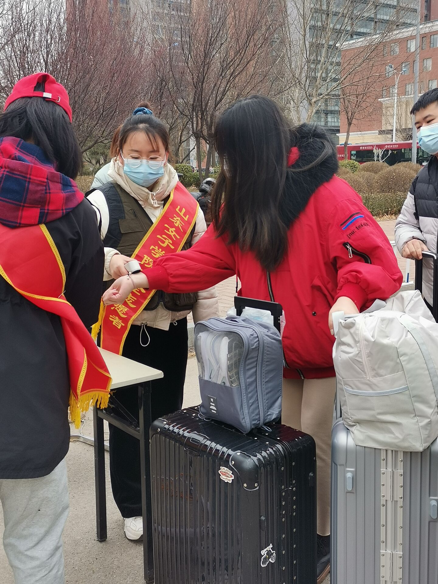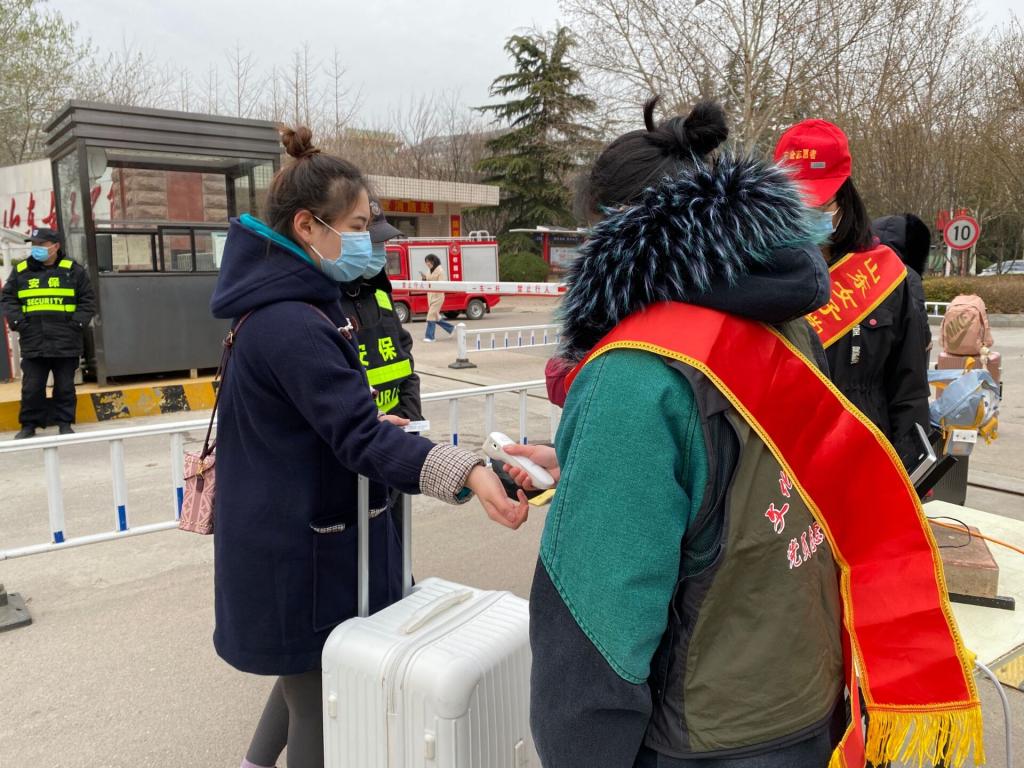 活动期间,志愿者们在学校门口为入校人员测量体温,为疫情防控贡献自己的一份力量。恰逢部分宿舍搬迁,学院领导和老师带领学生党员帮助相关同学进行搬迁,并进入宿舍叮嘱同学们注意人身、用电和财产安全,要在新的宿舍保持好卫生环境,全身心投入到新学期的学习和生活。党员们在迎接大家返校的过程中,主动承担起责任,帮助返校同学搬行李、晒被子、整理书籍等。党员们忙碌的身影穿梭在校园内,他们不怕苦、不怕累,带着满腔的热情为同学们提供帮助,让同学们在新学期伊始就感受到了大家庭的温暖。