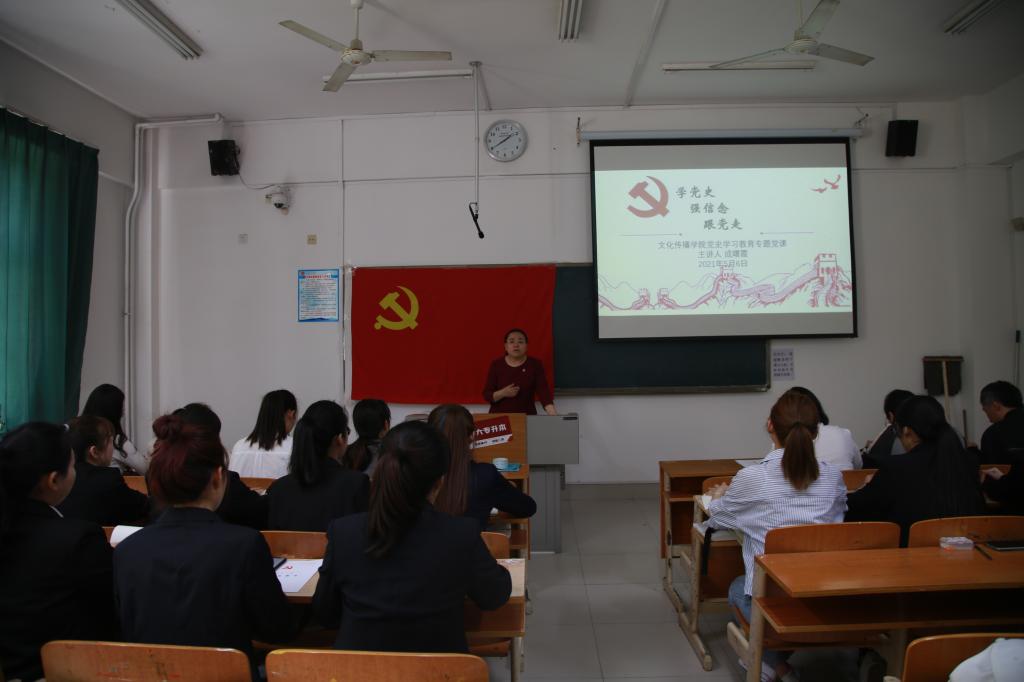 5月6日下午,文化传播学院党总支书记成曙霞以“学党史 强信念 跟党走”为主题,为学院全体学生党员、积极分子代表、教师党员上了一堂生动的党课。
