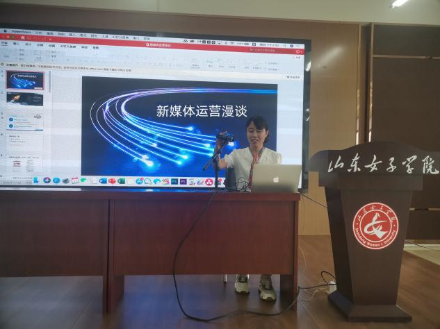 6月17日下午,山东女子学院第四届文化艺术节系列活动之新媒体运营讲座在学校新实训楼322会议室举办。本次活动由校团委主办,文化传播学院承办。文化传播学院院长助理郭静副教授担任主讲人。各学院负责新媒体运营的老师和同学代表参加了本次活动。
