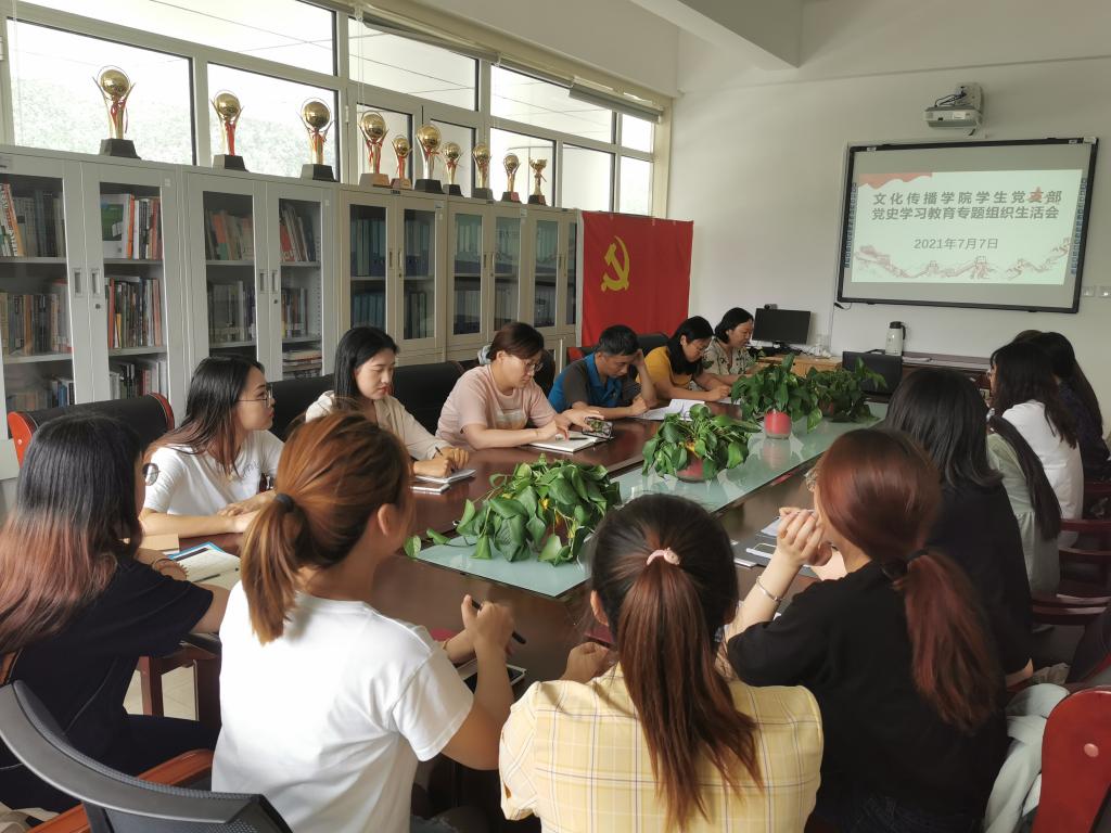 7月7日下午,文化传播学院学生党支部在求真楼211召开了党史学习教育专题组织生活会。学生党支部全体党员参加了会议。