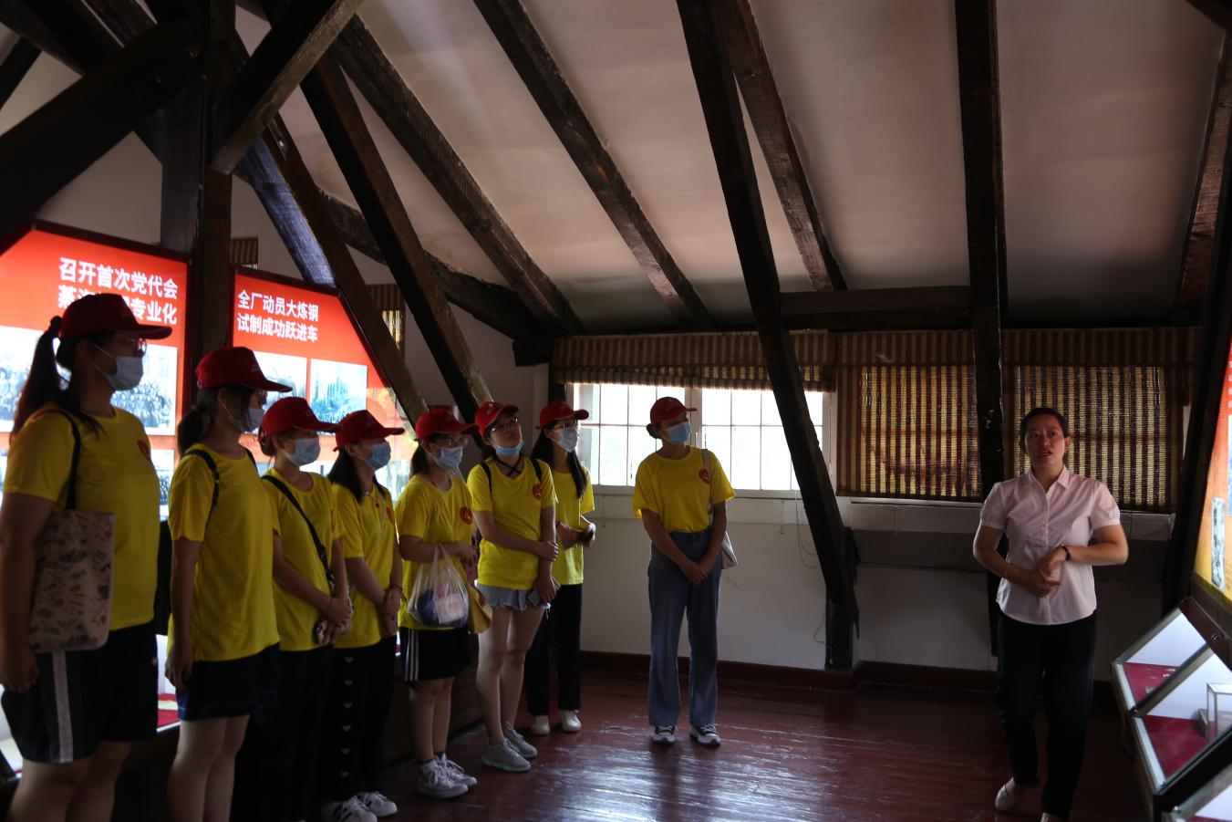 在对“印象济南·泉世界”园区进行抖音短视频传播策略调研过程中,队员们对于短视频中出现的济南铁路大厂水塔进行了了解。济南铁路大厂始建于1910年,是济南近代工业文明的遗存地标,波澜壮阔的红色革命文化使之被冠以“红色大厂”的美誉。到达中车山东机车车辆有限公司后,厂史馆的讲解员介绍了“铁路大厂”的发展历程以及与中国共产党发展的密切关系。作为中国共产党创始人之一的王尽美,在建党之前就曾到该厂传播马克思主义,并与后来成为中共第一任中央监察委员会主席的王荷波等人成立了津浦铁路济南大槐树机厂工人俱乐部。他们启发工人阶级觉悟,播撒革命火种,成立了山东省第一个工会组织和省内第一个企业党支部。通过一幅幅珍贵的图片资料,大家看到了中车山东机车车辆有限公司一百多年来的奋斗征程,百年传承的红色基因成为公司发展的内生动力。如今 “济南铁路大厂”厂史馆作为山东省和济南市爱国主义教育基地、山东省党史教育基地,发挥着教育党员群众的重要作用。