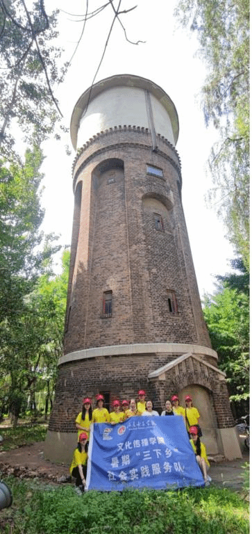 在“济南铁路大厂”水塔原址所在地,队员们将其与“印象济南·泉世界”中的仿造水塔进行对比,感慨这座见证了111年历史的建筑依然挺立如昔。马克思主义学院方莹老师为大家讲解了津浦铁路和济南铁路大厂修建的历史背景,并号召同学们学好专业知识,用脚踏实地的行动建设社会主义强国。