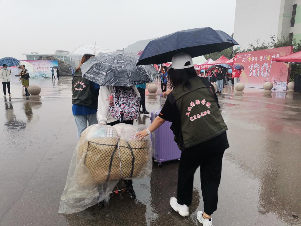 9月4日阴雨连绵,但学生党支部党员们为新生服务的热情却丝毫未减。学生党员们一早便在迎新场地集合完毕,安排好任务分工后,便投入到了紧张的迎新工作中。面对一张张新奇又陌生的面孔,党员们拿起新生的行李,陪同和指引他们前往报到处办理相关手续,并帮助将行李送至宿舍楼上。淅淅沥沥的秋雨给迎新工作带来了很多困难,但所有党员始终坚守岗位、热情依旧。校园里,学生党员的身影成为一道靓丽的风景线,被“拾光”党员志愿服务队的相机记录了下来。她们以积极的态度对待各项工作,在不同的岗位上发光发热、无私奉献。在学生党员们的积极帮助下,远道而来的新生刚入学便倍感温暖。