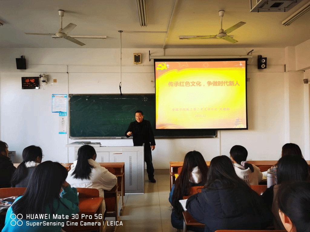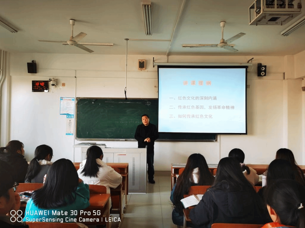 12月21日下午,红色思政课《传承红色文化,争做时代新人》在博学楼318教室举行,传媒学院教工第二党支部书记刘建彬主讲,支部党员及文化产业管理专业部分同学参加。
