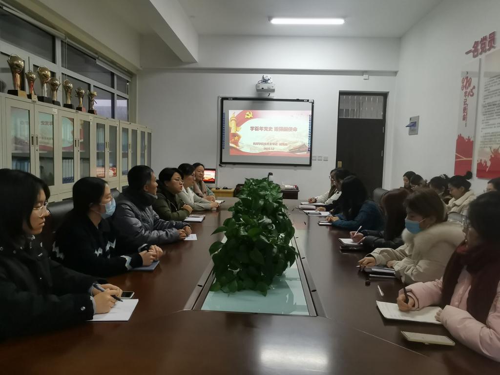 为深入学习贯彻习近平新时代中国特色社会主义思想,推进党史学习教育深入开展,12月22日下午,传媒学院党总支书记成曙霞在求真楼211会议室,以“学百年党史 担强国使命”为题讲授思政课。学院教师代表、学生党员、入党积极分子参加。