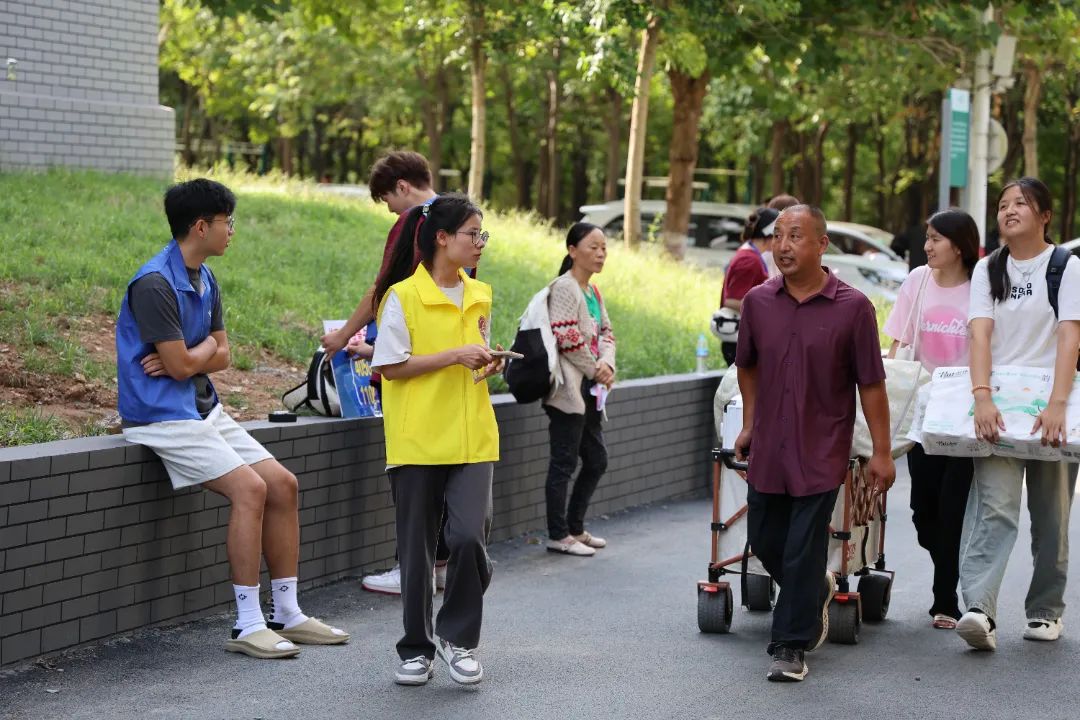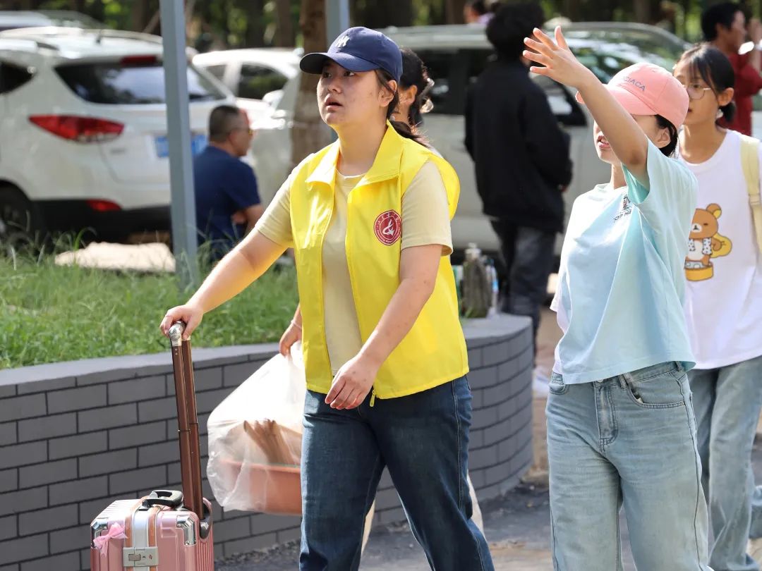 学院志愿者分为南门咨询及引领志愿者、报到注册引导志愿者、“一站式”迎新志愿者”三组,分别在南门、巾帼广场与宿舍间协助新生进行引领、登记、行李搬运等工作,大家以饱满的精神状态迎接新生和家长的到来,热情服务每一位新同学,传递学院青年学子昂扬向上的青春力量。