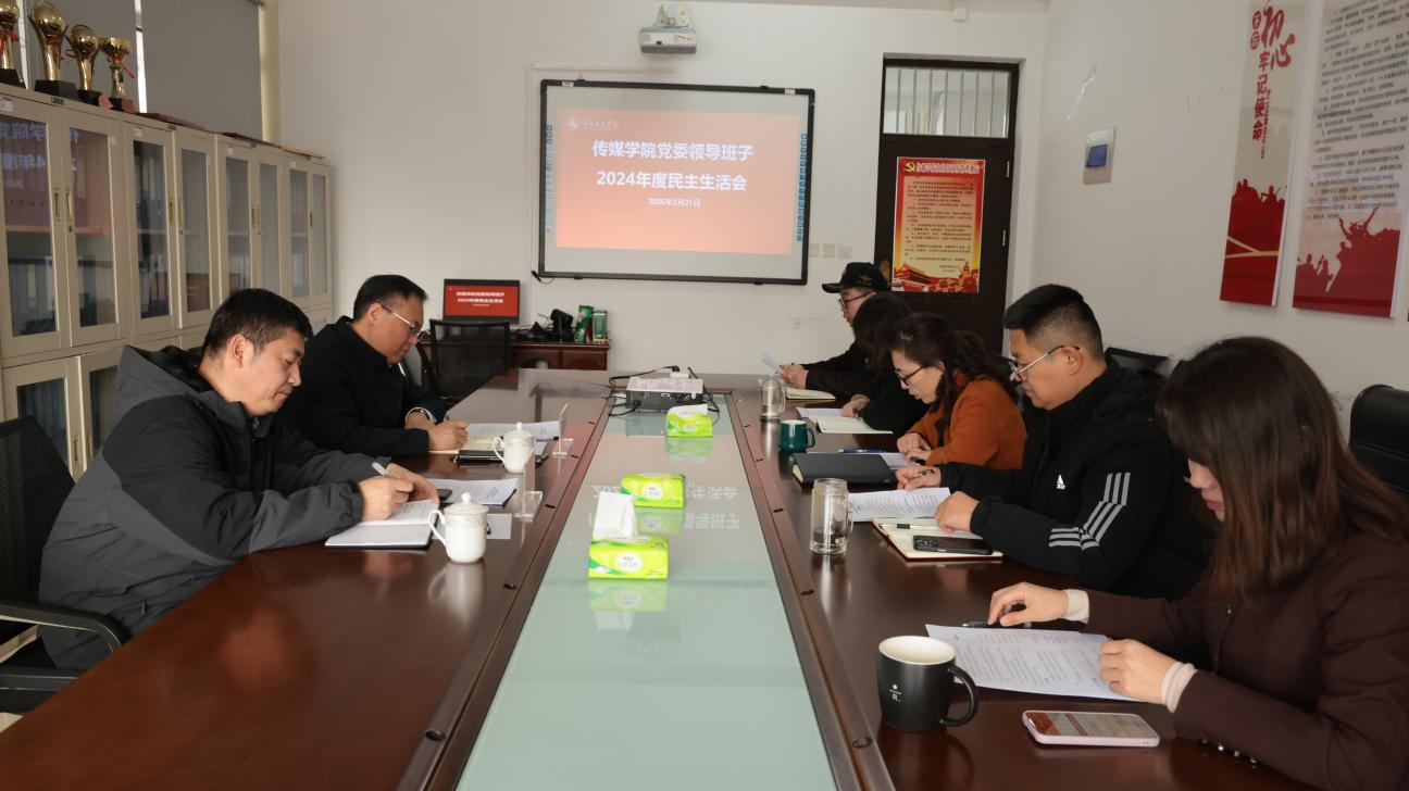 2月21日,传媒学院党委领导班子在求真楼211会议室召开2024年度民主生活会。学校党委副书记龙希利,以及纪委副书记姚树欣到会指导。学院党委书记李霞主持会议,党委委员参加会议。
