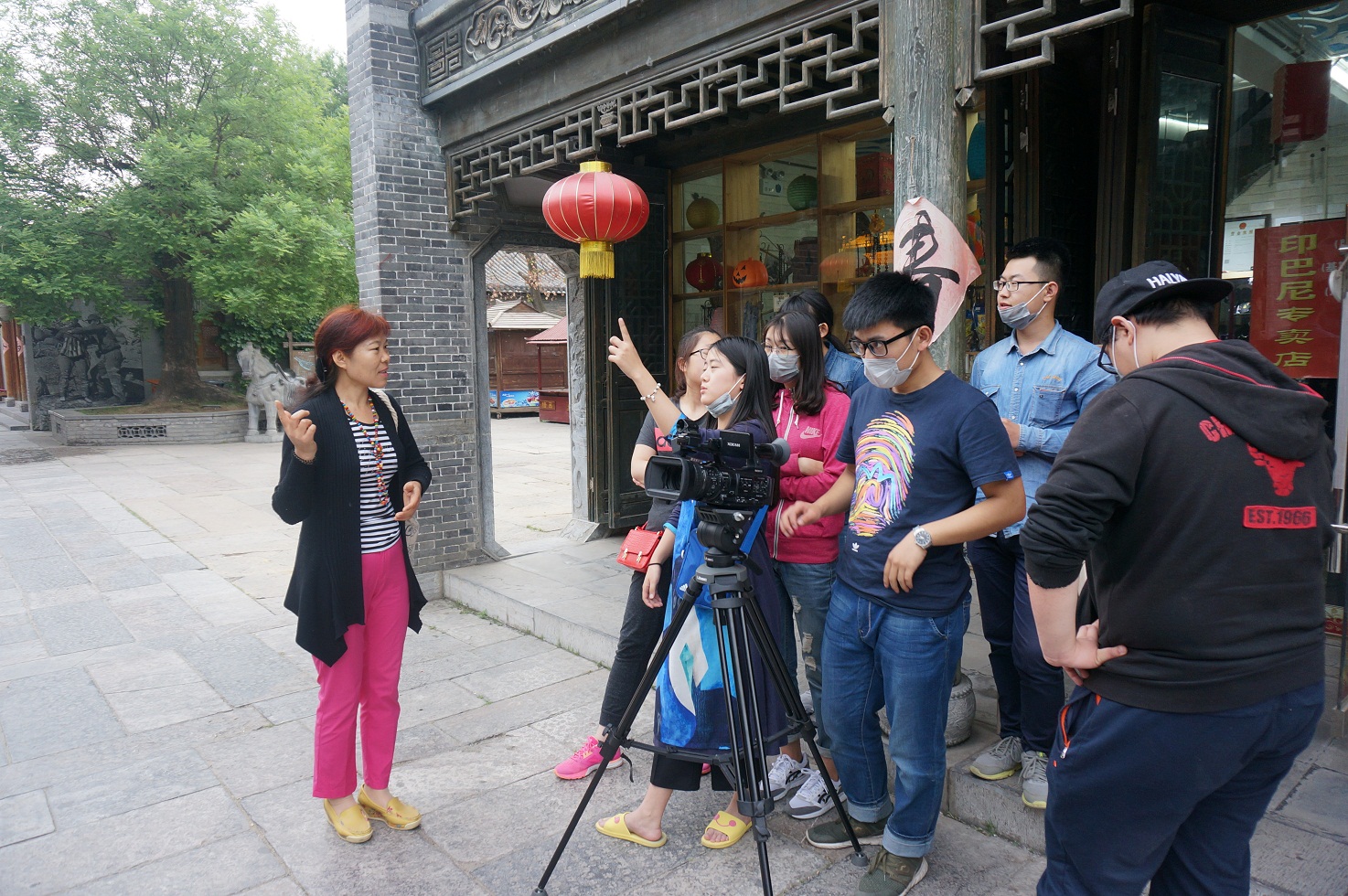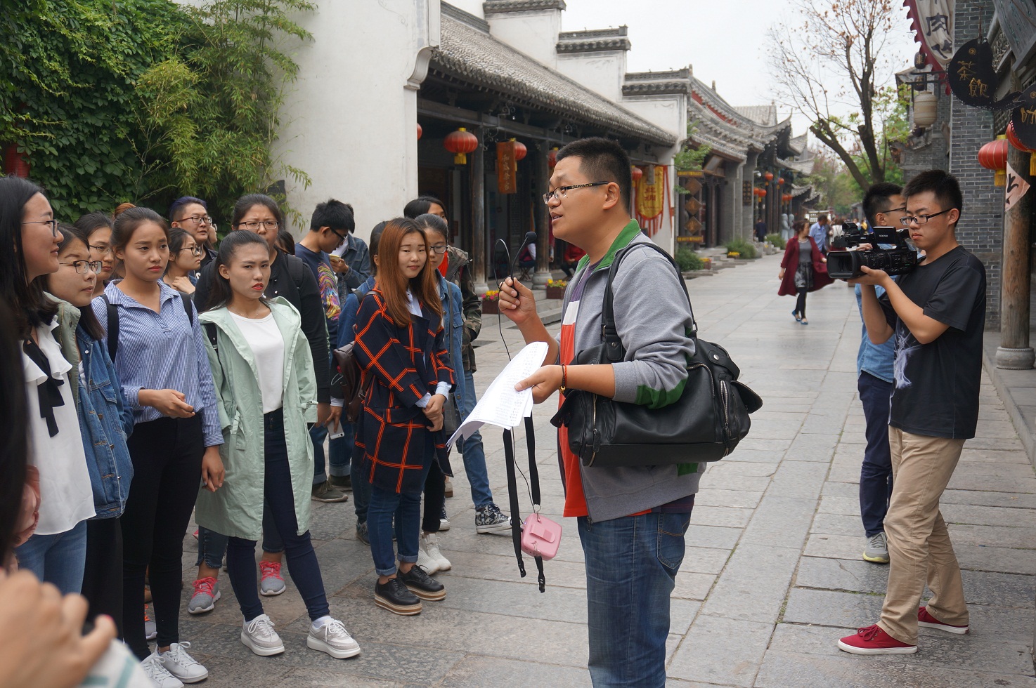 随后,是师生一行来到实践考察的主要目的地——台儿庄古城。在导游的带领下,同学们参观了古城内的主要景点,并了解了由不同的饮食文化、手工技艺、酒文化、青楼文化、柳琴戏等共同组成的鲜明的运河文化。随即后同学们便分组开展文化调研活动,利用下午和第二天上午的时间,通过摄影摄像、采访等活动,对古城内具体的调研对象进行了更加深刻的调研,获取第一手资料。晚上老师辅导学生,查看学生调研收获及存在的问题并加以指导。