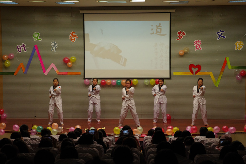 接着,2015级新生迎新晚会在青春活力的舞蹈串烧《Genie》中拉开帷幕,看着她们踏着青春的节拍,释放激情的舞步,感受到文化传播学院学子的热情与活力。当歌声响起的时候,全场同学打开手机电筒随着节奏一起挥舞,整场晚会,汇集歌曲,跆拳道,新闻脱口秀,朗诵,相声,小品,传统戏剧二胡,民族舞多种元素,带给同学们一场惊喜不断地晚会。晚会分为“歌舞青春”“致敬经典”“梦想起航”三大板块,穿插游戏环节,《跆拳舞》中既有跆拳道肢体语言的独特感染力,又结合健美操的动感强烈,颇具娱乐身心的功能;二胡合奏《赛马》和豫剧《穆桂英挂帅》民族舞《且吟春雨》感受到中国文化的魅力。男生舞蹈串烧《潇洒先生》和《小鸡小鸡》动感活泼,游戏环节更是把整场晚会的气氛提升到新的高度,最后,在教师合唱《明天会更好》的旋律中晚会接近尾声,大家一起合影留念用欢笑给这场晚会书写完美的句号。