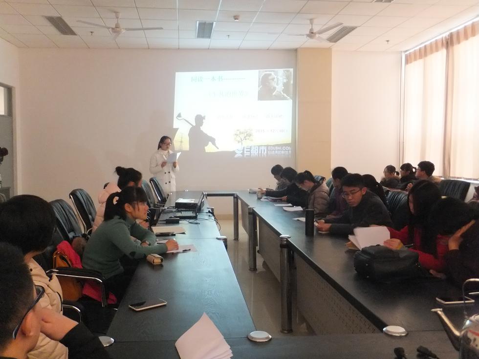 2015年12月10日下午,尚美读吧和读者协会共同在山东女子学院图书馆B座106室举办了“同读一本书——《平凡的世界》”读书交流活动,来自文化传播学院和社会与法学院、教育学院等全校几十名爱好读书的同学参加了本次读书会。读书会由杨阳主持,文化传播学院程春梅老师和图书馆文向华老师做点评。 读书会从观看路遥的纪录片片段开始,渲染了“书写完了,咋就走了”缅怀作家路遥的气氛。由12位同学轮流做与阅读《平凡的世界》这本书有关的主题发言。有的同学介绍了路遥的生平和这本书的大致内容,用一种梳理的方式带大家进入《平凡的世界》的氛围。有的同学就“人生是什么”联系《平凡的世界》告诉大家她的想法,认为人生就是永无休止的奋斗,这引起大家的共鸣。接着大家从谈看电视剧《平凡的世界》的感受展开进一步的讨论,有人说这是一群平凡的人做着平凡的事但演绎着不平凡的人生,还有个同学说自己是各种小说脑残粉,对路遥的《平凡的世界》持着一种心有不甘的看法,并宣称造化弄人,为什么要把田晓霞写死去呢?为什么孙少平和田晓霞就不能好好的在一起呢?许多的为什么引起大家的共鸣,并与余华的《活着》比较,让大家明白这才是社会人生的现实,有残缺的世界才是真实的世界。在阅读的过程中大家不仅仅是读作品,还认识作者,在一片对路遥的赞美声中,有的同学则说,路遥是一个不合格的丈夫,他把家庭甩给妻子承担,两人的矛盾很深。有的同学认为路遥有崇尚权力的潜意识,否则为什么将孙家的三个孩子都安排跟高官的后代恋爱或结婚?这种对作者的拷问让大家耳目一新,尊重作者,但不迷信作者,这充分体现了同学们阅读与思考的深度 程老师点评后跟同学们聊读书的经验,她说大家都喜欢《平凡的世界》,因为能感到主人公的成功自己努力后可以复制,正如《林肯传》、《富兰克林自传》在美国非常受推崇,因为林肯和富兰克林作为普通人逆袭成功,会让大家看到自己也有成功的希望,可以复制这样的逆袭人生。程老师建议同学们可以把《平凡的世界》当做枕边书,随时阅读,随时获得鼓励。文向华老师推荐大家去看《路遥传记》,她希望同学们能多读书,多传播正能量,把书里表现出的这种平凡的力量带给更多的人。海明威曾在《老人与海》中说过,“一个人并不是生来要给打败的。你尽可以消灭他,但你就是打不败他”。让我们来共勉!多读书,读好书,在喧嚣的时代,守住我们的精神家园。