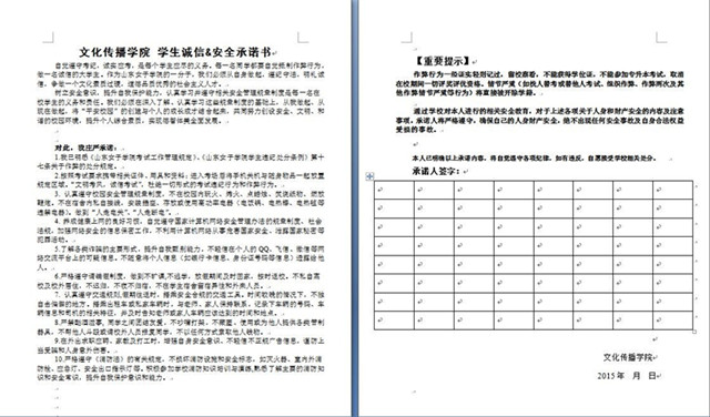 在本次主题教育活动中,各班首先学习了《山东女子学院学生违纪处分条例》中关于考试作弊处分的内容,明确了一旦考试作弊将接受的对应的处分,促使学生增强诚信考试意识,自觉遵守考试纪律,养成诚信品格。其次学习了《山东女子学院学生违纪处分条例》中关于违反公寓管理规定的内容以及《山东女子学院公寓管理规定》、《山东女子学院公寓消防安全管理规定》等。针对近期一些学校公寓出现的火灾情况,观看了火灾警示教育片,并对前期公寓检查中所发现的一些问题进行了通报,对于假期前后经常出现的安全隐患做了讲解,尤其是要警惕网络诈骗。在集体学习完毕之后,同学们在《文化传播学院学生诚信和安全承诺书》上进行签字,表达自己绝不作弊和注意安全的决心。