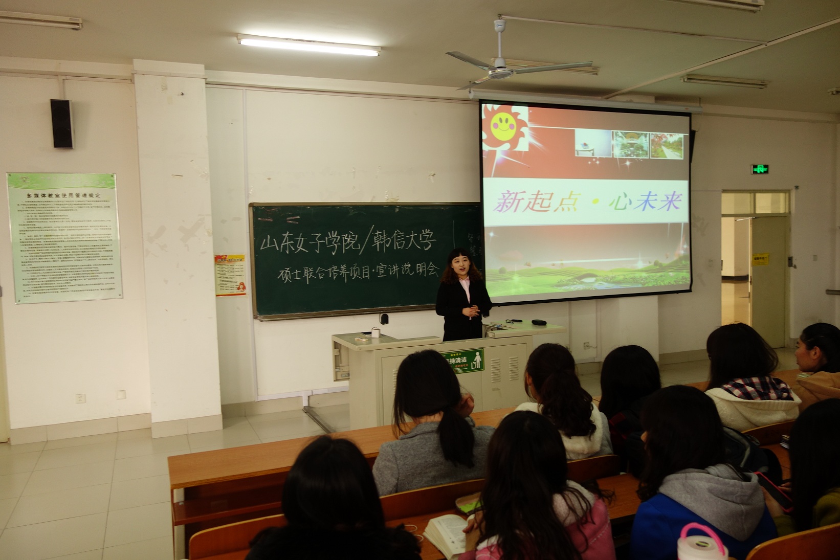 2015年3月19日下午,文化传播学院在合班楼208召开了山东女子学院&韩信大学硕士研究生联合培养项目宣讲会,文化传播学院400多名同学参加了本次宣讲说明会。