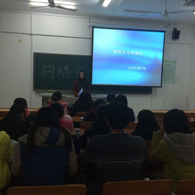 12月5日下午6:30,文化传播学院学生会组织各班班长和纪律委员在普教楼212召开了网络安全座谈会。座谈会上同学们积极发言,热烈讨论,对当下与大学生息息相关的网络安全问题进行了分析与总结,掌握了基本的网络安全常识和应对安全问题的技巧。