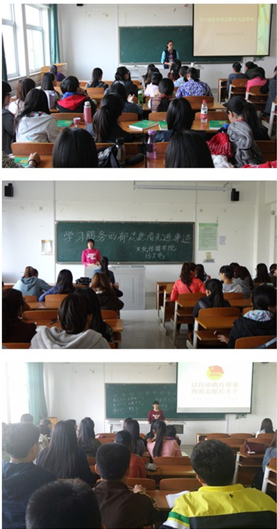 10月23日,为进一步引导高校毕业生在社会主义新农村建设和促进区域经济协调发展中发挥积极作用,推动西部计划健康科学发展,为构建社会主义和谐社会贡献力量,鼓励青年学生受锻炼、长才干、做贡献。文化传播学院各团支部开展以“学习服务西部志愿者先进事迹”为主题的主题团日活动。