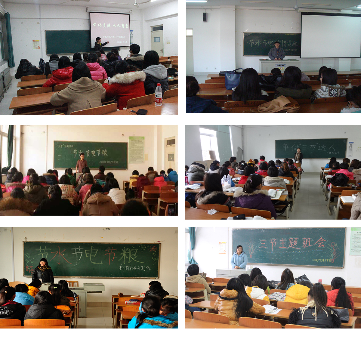 本次主题团日活动在各团支部内开展,由各班团支书主持,会上各班同学讲述了对节约的认识,并积极交流各自的节约经验,紧扣“三节”活动主题。2012级文化传播大类赵国栋同学在发言中表示:“要在日常生活养成节约的好习惯,从身边的点点滴滴做起。”2013级文化产业管理崔萌同学说:“节约是中华民族的传统美德,也是每个公民引进的义务,所以我们更应该珍惜大自然给我们的馈赠。”最后,各班团支书对活动进行了总结,倡导同学们节约资源从点滴小事做起,同学们积极响应。光盘行动餐厅协管员,收集旧中性笔芯、,微博中关于三节话题的讨论电子贺卡,义务清扫校园,“美丽女院我的家,学生代表走进后勤”