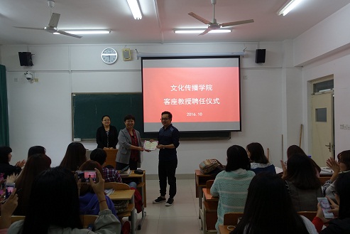 徐丽萍副院长代表学院向小新颁发聘书,希望小新加强与学院教师在教学、科研、社会服务等方面的工作交流,以丰富的经验和深厚的学识带动广播电视学专业的对外交流。聘任仪式结束后,小新开展了《媒体融合环境下脱口秀电视节目的传播特征研究》的专题讲座。