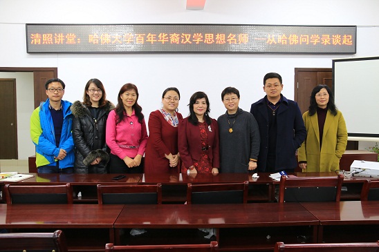11月21日下午,北美华文著名作家、哈佛中国文化工作坊主持人张凤女士应邀在办公楼第四会议室举办了“哈佛大学百年华裔汉学思想名师:从《哈佛问学录》谈起”专题讲座。该讲座是本年度清照讲堂的系列讲座之一。相关专业老师和文化传播学院部分学生聆听了本次精彩的讲座。