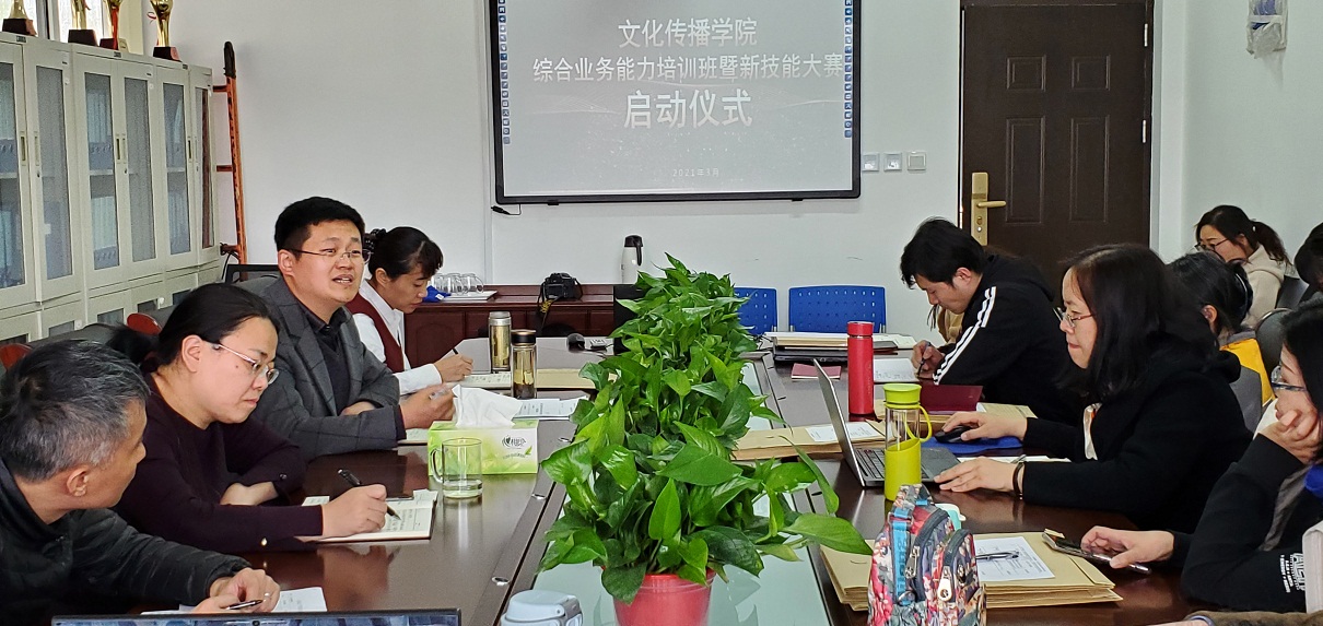 3月18日下午,文化传播学院“教师综合业务能力培训班暨新技能大赛启动仪式”在学院211会议室举行。会议由我院院长李百晓主持,全体教师参会。