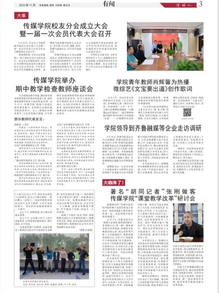培养高素质传媒人,是传媒学院教育教学的办学宗旨。基于应用型人才培养目标及实践课程的平台需求,特推出传媒学院院报《传媒人》,增强学院“六位一体”实践教学平台功能,强化传媒人才培养的实景性,提高实践教学质量,培养更多适应新时代需求的高素质传媒人才。各版面具体设置如下: