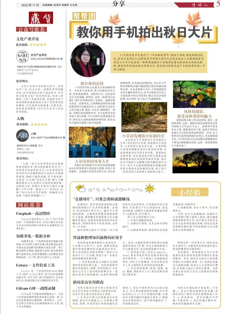 通过“帮帮团”、“藏货”“小经验等专栏”分享优质公众号、短视频号、个人收藏的好文章和拍照小经验。