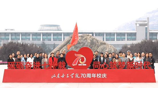 健步走活动开始前,传媒学院全体教职员工在学校70周年校庆不锈钢雕塑后合影留念,共同为山东女子学院校庆献上祝福。活动中,老师们沿大学路昂首阔步,凝心聚力、坚毅前行、奋发向上的氛围充满着整个队伍。