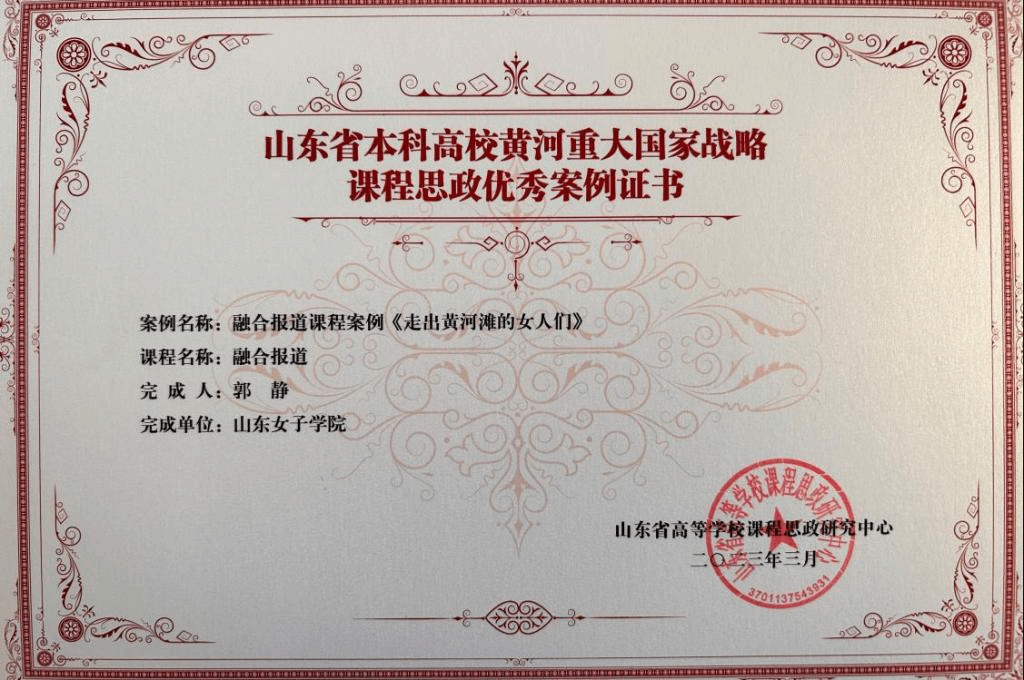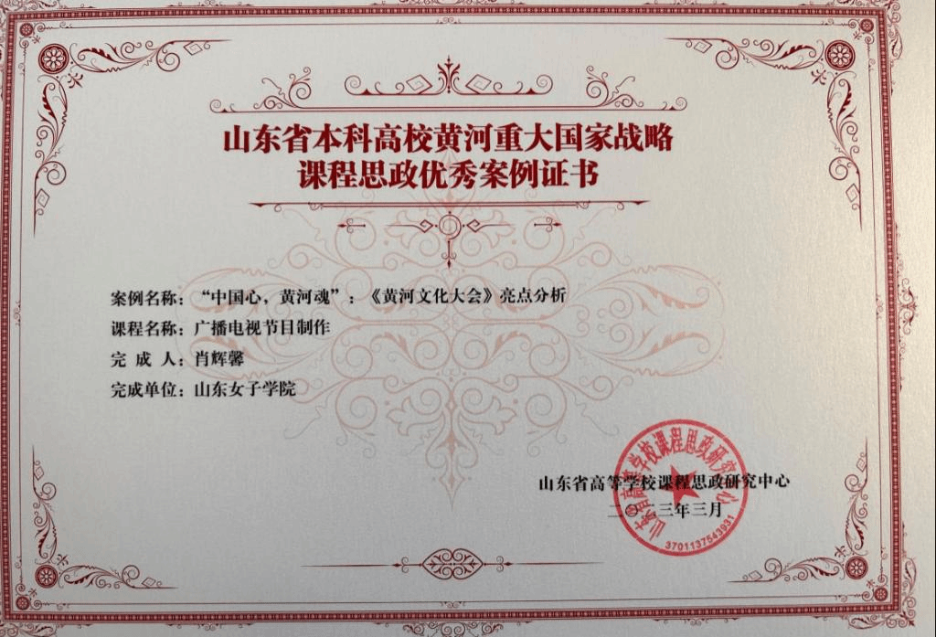 传媒学院申报的《纪录片创作》、《融合报道》——《走出黄河滩区的女人们》、《广播电视节目制作》——《“中国心,黄河魂”:<黄河文化大会>》三门课程的课程设计入山东省本科高校黄河重大国家战略课程思政优秀案例,课程思政建设取得新突破。山东省本科高校黄河重大国家战略课程思政优秀案例评选活动由山东省教育厅高教处指导、山东省高等学校课程思政研究中心组织开展,旨在贯彻落实黄河流域生态保护和高质量发展战略,深入推进黄河重大国家战略融入课堂教学,持续提升课程思政教学研究水平。