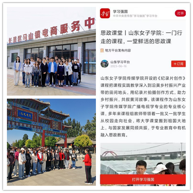 学院经过多年不懈探索打造的卓越传媒类人才培养“六位一体”实践教学创新模式,被央广网、学习强国山东平台、大众日报、齐鲁晚报等国家级、省级媒体报道20余次。《纪录片创作》《新闻调查》等综合实践课在主题教育中围绕乡村振兴、黄河战略进行了思政元素挖掘,该实践模式被推选为学校主题教育典型案例,并受到省领导点名表扬。