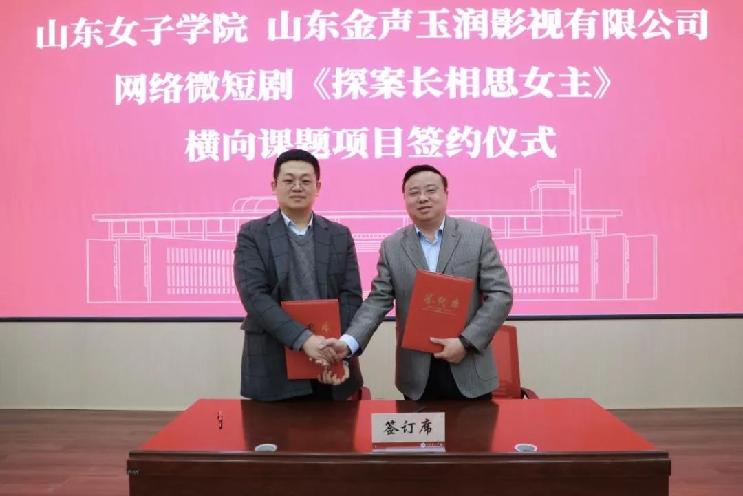 活动现场,网络微短剧《探案长相思女主》开机仪式启动。该剧由山东女子学院传媒学院与山东金声玉润影视有限公司联合摄制的,并现场签署横向课题合作协议。