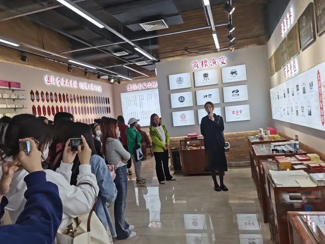 学院李梅老师、任天华老师与企业相关负责人就合作方式进行了深入交流。同学们在老师和企业方工作人员的带领下,参观了宏济堂中医药文化旅游景区的文化展厅、特色博物馆和文化墙,详细了解了企业的发展历程、经营理念以及文化传承等情况。山东博物馆的“齐鲁雄风”“山东古代文明”“山东现代文明”“齐鲁文化与中华文明”等展厅。同学们纷纷表示,参与此次活动受益匪浅,对企业的营销环境、营销策略、营销宣传、消费者分析以及山东历史、中医药文化和艺术有了更加深入的了解。